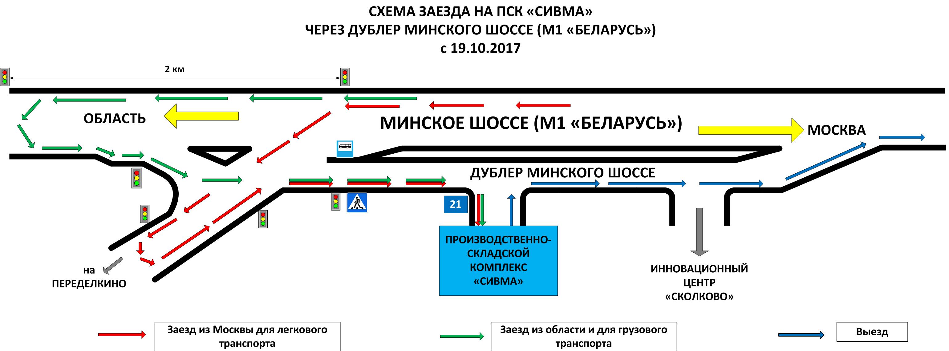 - По Минскому шоссе на 2-ом светофоре разворот в сторону Москвы (для большегрузных автомобилей)